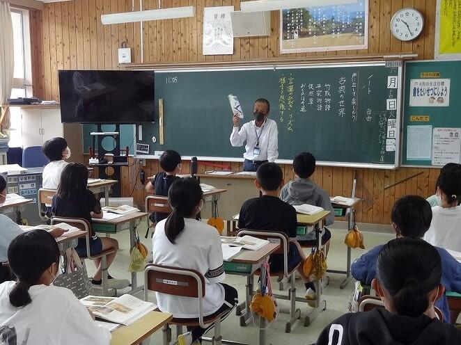 6月14日(火) 3校時、校長による授業「声に出して読もう『古典の世界(一)』を行いました。音読のポイントとして、①声を張って、②強弱・間をつけて、③ゆっくり読むことを学びんだ、子どもたちは、真剣に、でも楽しそうに音読の練習に取り組みました。授業の後半では、大きな声で上手に一斉読みすることができていました。