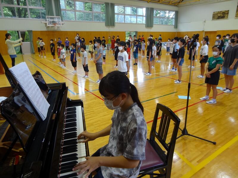 8月25日(木) 明日からの2学期を前に、押方校長を講師にラジオ体操についての研修を行いました。手や足の力の入れ具合、なぜの伸ばすのか、なぜ声を発するのかなど、一つ一つの動きの意味や動かし方のコツを教わりました。動きの意味が分かると、一人一人の動きがそろってきれいなラジオ体操になりました。運動会では子どもたちの動きのそろったラジオ体操が見られそうです。