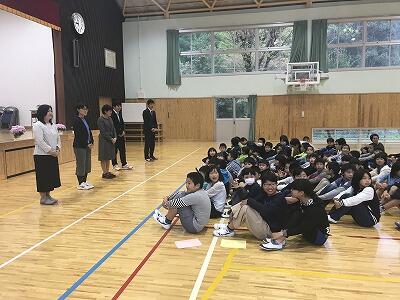 西臼杵の小学校の学校紹介の様子です。大きな声が響き渡りました。