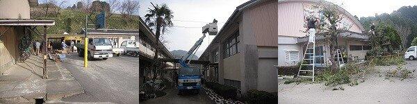 今回は飼育小屋の撤去、体育館雨どいの清掃、体育館周辺の樹木の剪定作業、除草作業が行われました。毎回そうですが、今回も施設委員の方のご協力で、高所作業車まで登場するという大規模な環境整備作業でした。皆さん、お休みのところをご協力ありがとうございました。