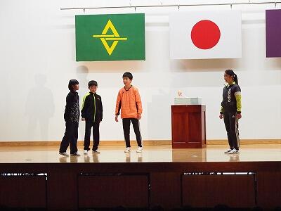 5年生は音楽で練習したルパン三世のテーマをもとに「盗まれた聖火をとりもどせ」という劇を発表しました!5年生らしい元気のいい発表でした!
