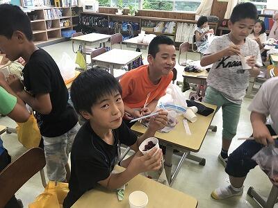 今日はクラブ活動の日でした。科学工作クラブではシャーベットを作りました。冷蔵庫がなくてもおいしいシャーベットができました。
