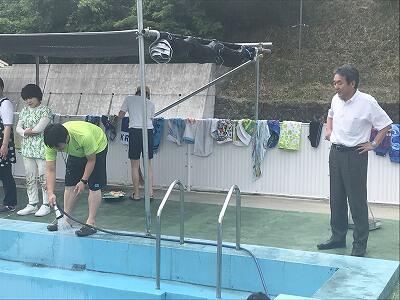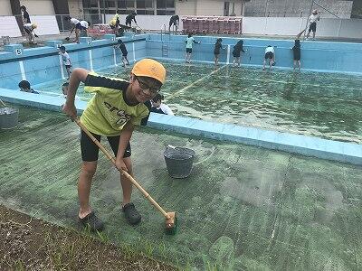 6月10日(月)午後にプール清掃がありました。4年生~6年生でプールを清掃しました。天気もよく絶好の清掃日和になりました。