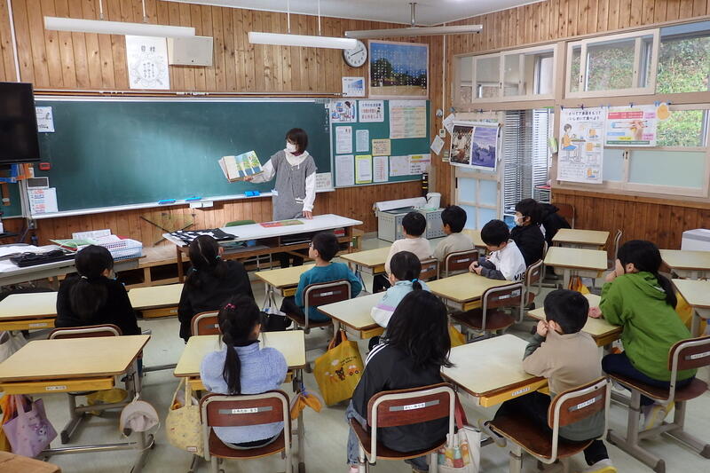 読み聞かせボランティア「がらがらどん」による読み聞かせです。1年教室です。