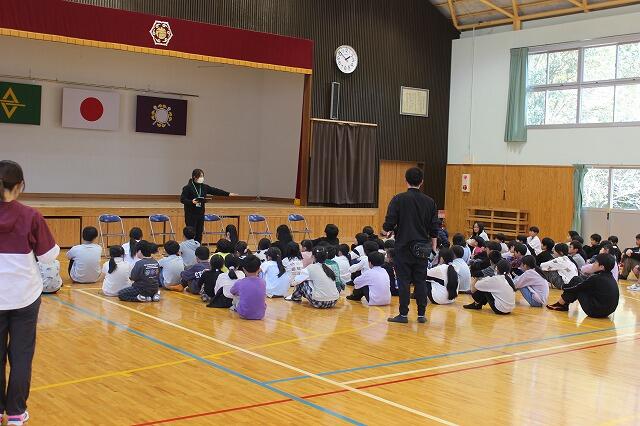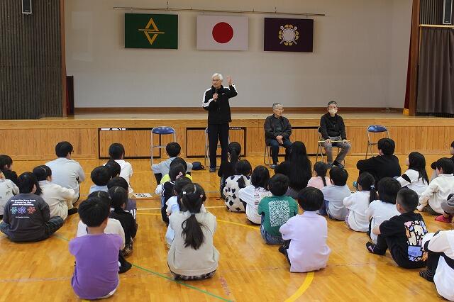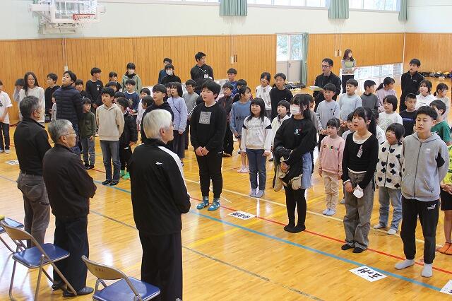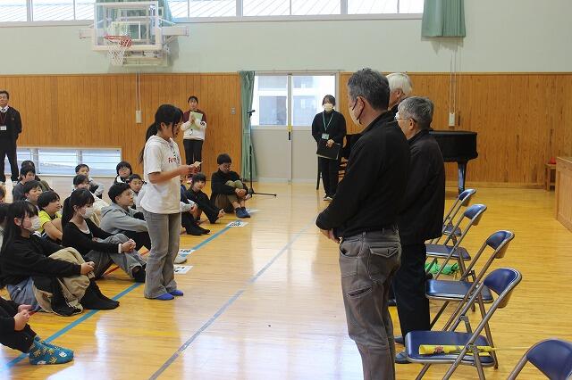 3月4日(水)に地区児童会と地域見守り隊感謝集会を行いました。地区児童会では、それぞれの地区ごとに集団登校するときの集合時刻や登校時の歩き方、横断歩道の渡り方など1年間の反省をしました。その後、1年間班長や副班長を務めてくれた6年生に対して感謝の言葉を下級生から送りました。地域見守り隊感謝集会には、見守り隊の佐藤毅さん、富髙浩二さん、土持耕典さん、土持美恵子さんに来ていただき、6年の竹尾心希さんからお礼の言葉を送り、最後に全校児童で感謝の気持ちを込めて「ふるさと」を歌いました。明日からも登下校の見守りをよろしくお願いします。