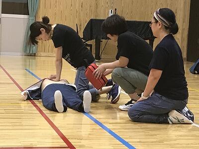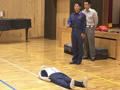 7月12日(水)19:30から家庭教育学級の開級式及び学校保健委員会が開かれました。広域消防署から職員に来ていただき、4名の指導者の下、PTAのみなさんが心肺蘇生法の講習を受講しました。和やかな雰囲気の中にも、真剣に取り組んでいただきました。参加した皆様ありがとうございました。