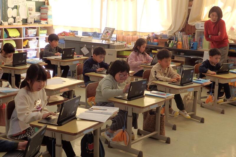 1年生が、タブレット端末を活用して大きな数を数えました。