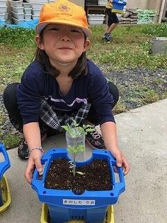 本日、2年生はミニトマトを植えました。大きくなってたくさん実をつけてほしいですね。