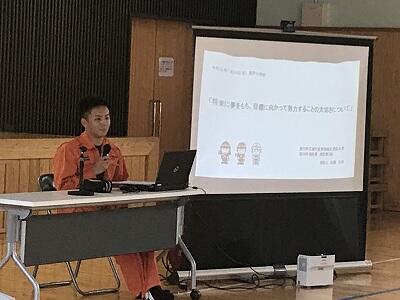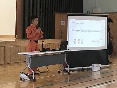 7月24日(水)に地区別学習会が行われました。岩戸小学校出身の中学生も参加して地区別に教え合い学習を行いました。また。今年は東岸寺出身で現在西臼杵広域行政組合消防本部職員として活躍されている佐藤光洋様に講話をしていただきました。