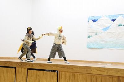 4年生は14名で方言劇「岩戸の子きつね」を演じました。高千穂弁満載の劇になりました。長いセリフもバッチリでした。劇の様子です。