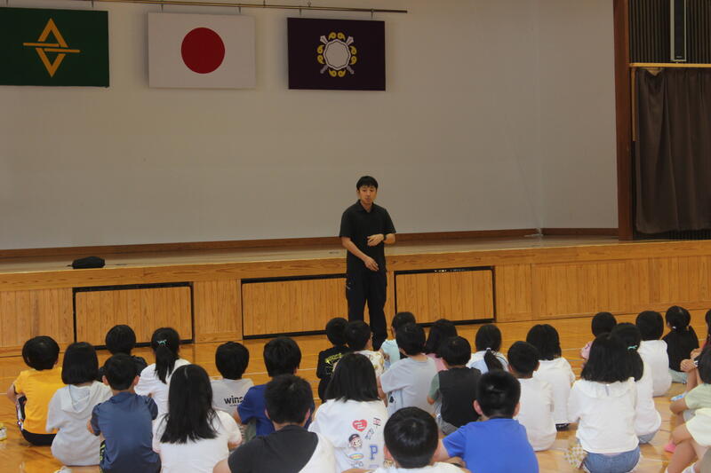 6月19日(水)の3校時に不審者対応の避難訓練を行いました。今回は職員玄関から不審者が侵入したという想定で訓練を行いました。児童は教室でバリケードをつくって待機しました。職員は不審者に対する対応の仕方の訓練を行いました。訓練の後に高千穂警察署の黒木さんと立川さんから「落ち着いて行動する」「避難するときにしゃべらない」「先生の指示をしっかり聞く」ということを学びました。不審者以外でも様々な避難の時に活用してほしいです。