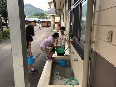岩戸小学校の朝は子どもたちが活発にボランティア活動に取り組んでいます。外では花の水やり、運動場の草抜き、プール回りの清掃、室内では廊下のモップがけや掃き掃除などを積極的に取り組んでくれています。