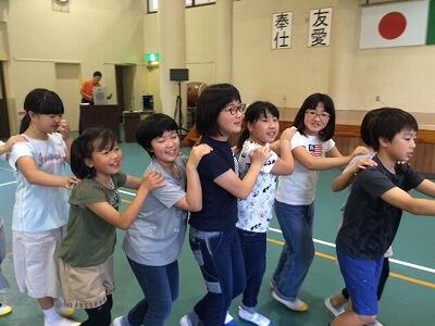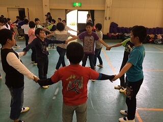 むかばきでの体験プログラムが始まりました。最初はアイスブレーキングです。3日間一緒に過ごす友達との交流の時間です。