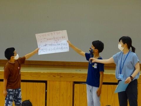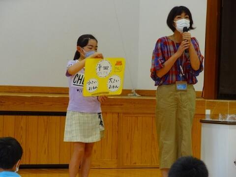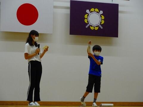 7月2日(金) 全校朝会を実施し、校長が登下校時の交通安全とコロナ対策について話をしました。その後、6年生による掃除の仕方についての説明と保健給食委員会による給食の話がありました。