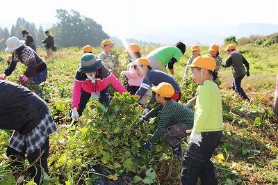 10月24日(水)に1・2年生は芋掘り体験を行いました。6月に植えた芋が大きく育っていて大きなイモと格闘していました。とった芋は、おうちに持って帰りました。残った芋は給食でいただきます。