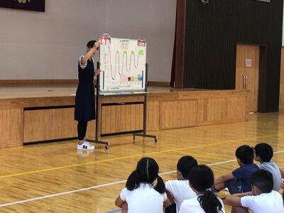 9月6日(木)今日は月に一度の元気もりもりタイムの日でした。睡眠の大切さについてお話がありました。レム睡眠とノンレム睡眠を手作りのボードとカードを使ってわかりやすく説明してもらいました。9月になり少し過ごしやすくなりました。よい睡眠をとって充実した学校生活をおくりましょう。