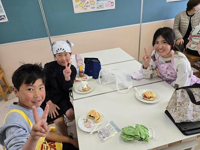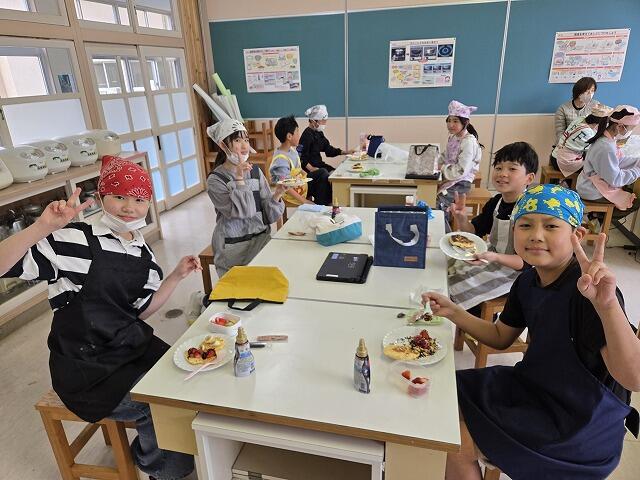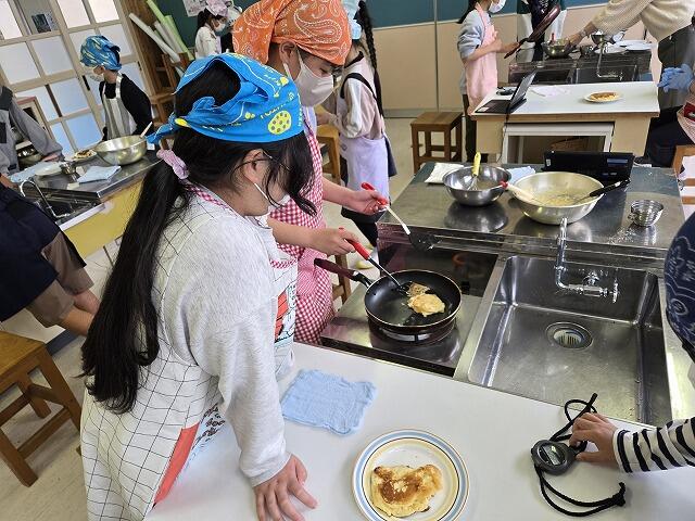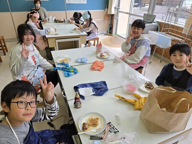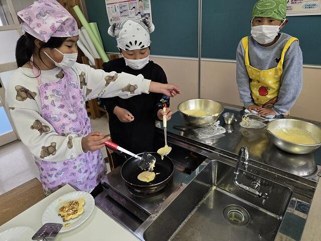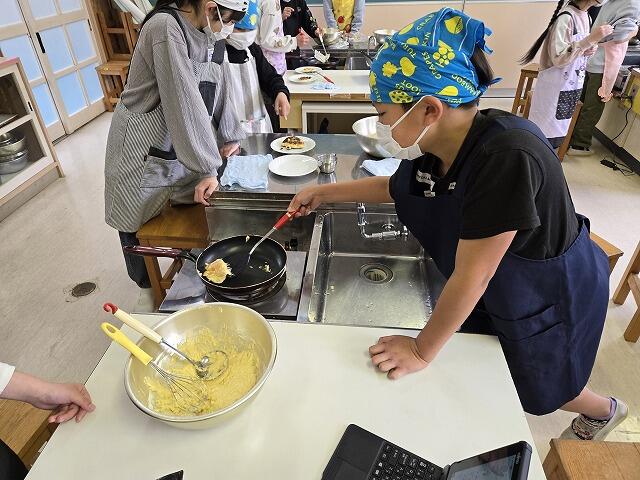 3月19日(木)に4年生が、レクリエーションで調理実習を行いました。今回は、パンケーキ作りにチャレンジしました。事前に作り方を調べていた係の子どもたちを中心に、グループで協力してパンケーキを作ることができました。材料の準備などへのご協力ありがとうございました。