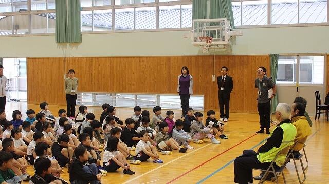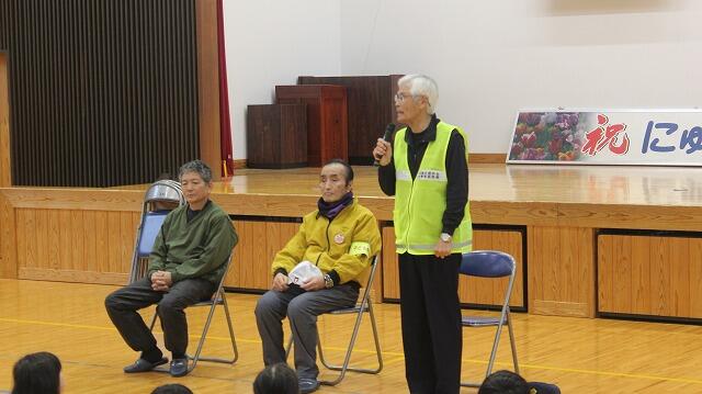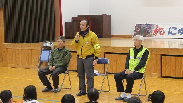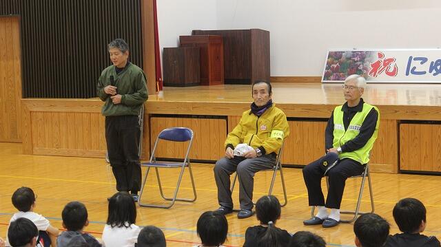 本日の見守り隊の対面式では、佐藤毅様、富髙浩二様、工藤敏一様3名の見守り隊の方に式に参加していただきました。登下校時のワンポイントアドバイスを頂いて、3名の隊員の方からは児童の元気のいいあいさつを褒めていただきました。早朝より、いつも見守りをして頂き本当にありがとうございます!! 1年間よろしくお願いいたします!!