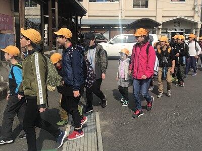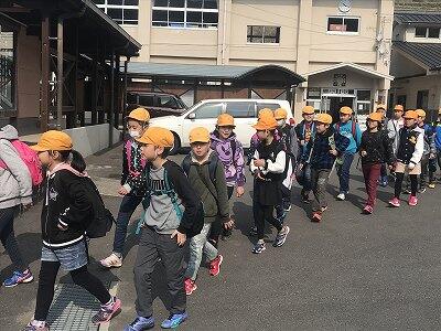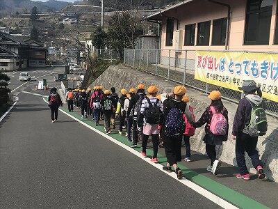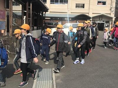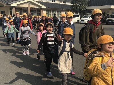 いよいよお別れ遠足に出発です。6年生は1年生と手を繋いで、2年生は5年生と手を繋いでの出発です。お昼は、神楽の館の広場で食べる予定です。6年生とのいい思い出をたくさんつくりましょう。