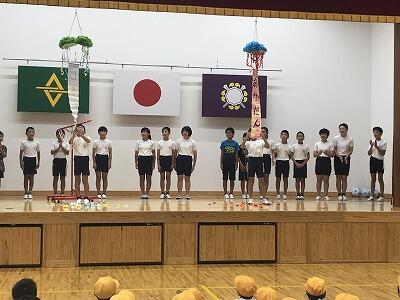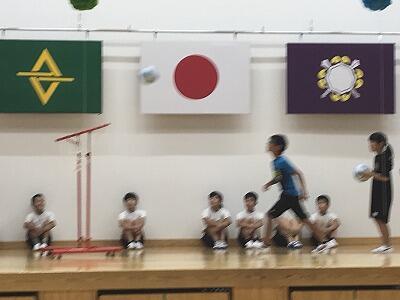 8月30日(金)令和最初の岩戸小学校の結団式が行われました。岩戸っ子委員会により今年の運動会のスローガンが発表されました。スローガンは『本気だ!協力だ!勝負だ!燃える思いをむねに 優勝の風にのれ 岩戸っ子』です。A団・B団のリーダーがシューティングゲームをしてくす玉を選び色を決定しました。A団が白団、B団が赤団に決定しました。今年の運動会は9月29日(日)に開催されます。