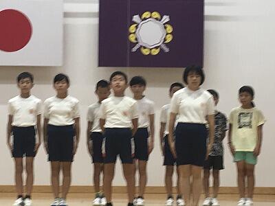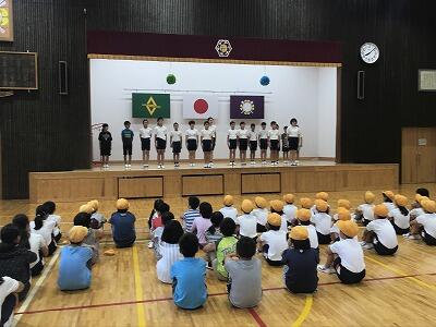 8月30日(金)令和最初の岩戸小学校の結団式が行われました。岩戸っ子委員会により今年の運動会のスローガンが発表されました。スローガンは『本気だ!協力だ!勝負だ!燃える思いをむねに 優勝の風にのれ 岩戸っ子』です。A団・B団のリーダーがシューティングゲームをしてくす玉を選び色を決定しました。A団が白団、B団が赤団に決定しました。今年の運動会は9月29日(日)に開催されます。