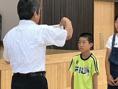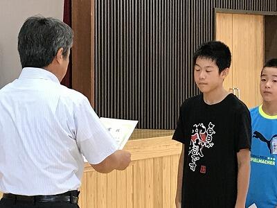 今日は登校日、みんな元気に登校してくれました。全校集会で校長先生が宮日新聞に紹介された『地区別学習会』の記事を使って、体験してほしいことについてお話がありました。生徒指導の先生から、安全に残りの夏休みを過ごしてほしいとの話の後、子ども水泳大会の表彰がありました。