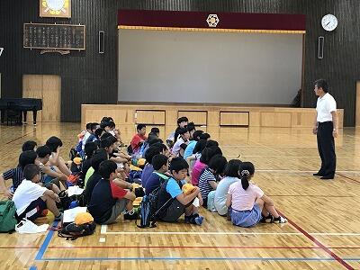 本日、町子ども水泳大会がすこやか館で行われます。今日の出発式の様子です。校長先生が、『自分との戦いです。今自分が持っている力を出し切ってきてください』と激励をしてくださいました。岩戸っ子頑張れー!!!!!