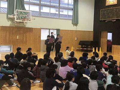 1月27日(月)の朝の時間に給食感謝集会が行われました!健康委員会の児童がこれまで練習してきた人形劇での発表でした。給食の大切さをクイズ形式で子ども達に示してくれました。