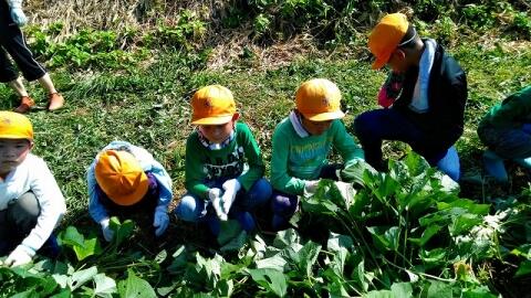 8月31日(月) 1・2年生は生活科で栽培しているサツマイモ畑の草取りをしました。周りの草は畑をご提供くださっている方が事前に刈ってくださっていたので、畑の中の草を取ったり、つる返ししたりしました。大きなサツマイモができるといいなあ。秋の収穫が楽しみです。