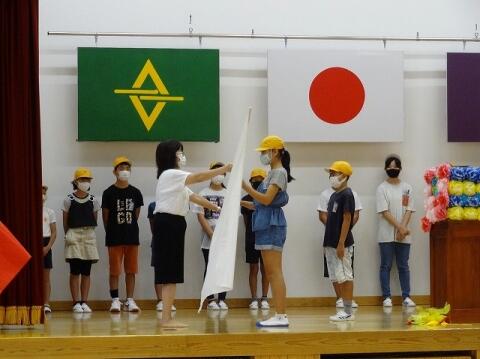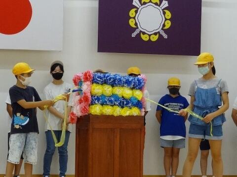 9月11日(金) 結団式を行いました。本年度は新型コロナウイルス感染防止のため運動会の規模を縮小し、応援方法にもいろいろと工夫しなければなりません。本日、団が決まり、団長・副団長を始めリーダーや団員達も気持ちが運動会モードになりました。