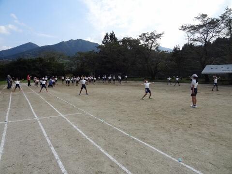 9月28日(月) 本日は、先週雨で流れた第2回目の全校体育があり、開会式、閉会式、応援、全校リレー等の練習を行いました。子ども達は集合するときからキビキビと行動し、本番に向け気合も入ってきた様子が感じられました。
