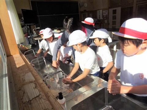 ◎ 団技退場と同時に手洗いに向かう5・6年生