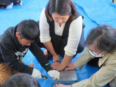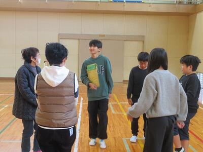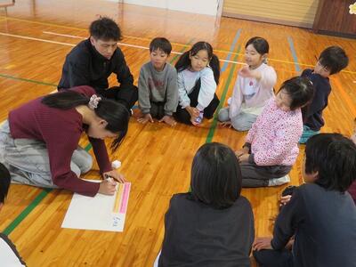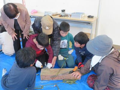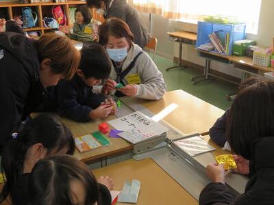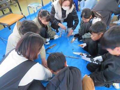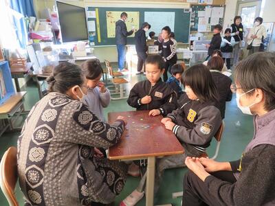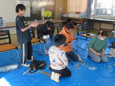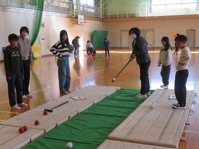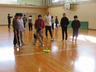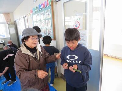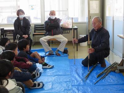 11月28日(金)に、祖父母及び保護者との交流会を行いました。交流会への案内をしたところ、70名を超える方々にご参加いただきました。交流会は、低学年、中学年、高学年に分かれて行われました。低学年は、昔の遊び(折り紙、あやとり、缶ぽっくり等)に、中学年は、昔の遊び(竹鉄砲、竹とんぼづくりと遊び)、高学年は、ニュースポーツ(フライングディスク、カローリング等)に取り組みました。どの学年部でも、祖父母及び保護者の方々と楽しそうに交流が行われていました。最後に、来てくださった方々に1・2年生が生産活動で収穫したサツマイモをプレゼントして交流を終えました。様々なご都合がおありの中、参加してくださいました祖父母及び保護者の皆様、ありがとうございました。今後とも宮水小学校の子どもたちとの交流をよろしくお願いいたします。