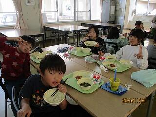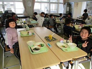 楽しくおしゃべりをしながら給食を食べていました。先生が話しているときや放送が流れているときは、おしゃべりをやめ、しっかり耳を傾けることができていました。
