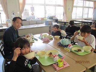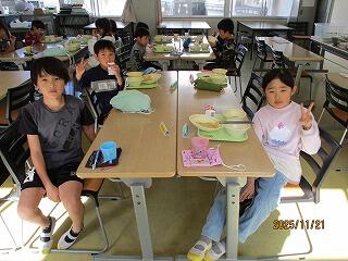 11月は、2年生と4年生がランチルームで一緒に給食を食べました。