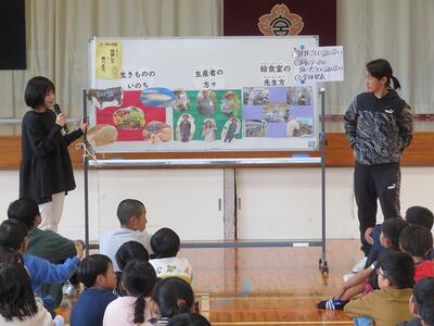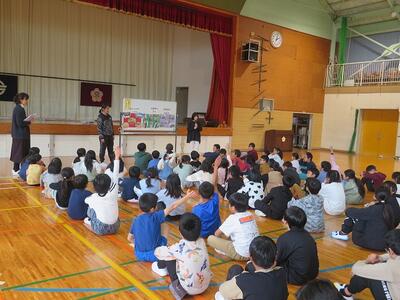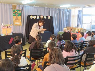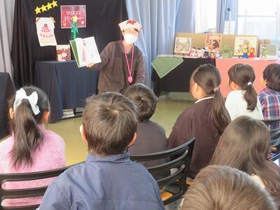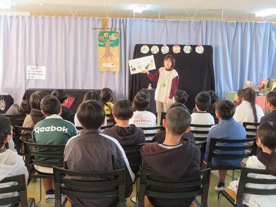 12月4日(木)に、高千穂町のえほん畑のみなさんが、「おはなし会」を行ってくださいました。6名の方が来てくださいました。絵本の読み聞かせを行ってくださったり、絵本をもとに実際の演技で表現してくださったり、手品をしてくださったりとバリエーションに富んだ構成で、子ども達はずっと引き込まれていました。今回は人数の都合上、1・2年生と3・4・5・6年生に分かれて実施されましたが、内容が異なっており、素晴らしい内容のものばかりで、職員も含め会場の全員が感動に包まれました。心が温まるえほん畑のみなさんの「おはなし会」でした。えほん畑のみなさん、本当にありがとうございました。