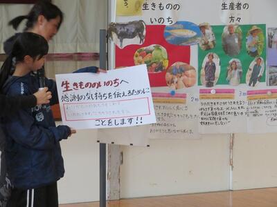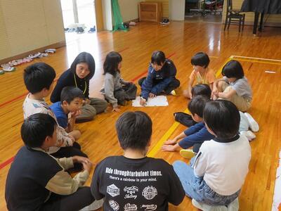 集会活動を行いました。今回の内容は、12月・1月の目標である「感謝して食べよう」についてです。宮水小学校では、集会活動の際にテーマを決め、宮水ファミリーとよんでいる縦割り班で、テーマについて話し合いっています。今回は、給食への感謝という意味で「生き物の命」「生産者の方々」「給食室の先生方」への感謝について考えました。全部で6班ありますので、一つの項目について2班ずつがそれぞれ話し合いました。そして、話し合った内容について全体で共有しました。出された内容の中には「目をつぶって生き物のことを思っていただきますを言う」や「苦手な食べ物でも一口でも多く食べる」等の意見が出されました。今回の集会を経て、給食をいただく際の感謝の気持ちがこれよりも深くなったことと思います。今日も感謝しながら「いただきます」。