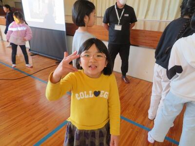 午後からは、手話教室が体育館で開かれました。子どもたちは、自分の名前を手話で表現することを覚え、楽しそうに披露してくれました。