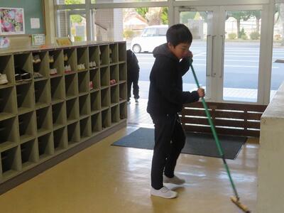 寒さが増している12月。そんな中、朝のボランティア活動に取り組んでいる5・6年生の姿があります。正門から下にある道路に続く階段をきれいにしてくれています。様々な委員会活動も担っている5・6年生ですが、朝の放送が始まるまでの時間等を有効活用しながら取り組んでいます。自分たちが通う学校のことを思うからこそ、この行動が生まれます。この思いが他の学年に広がり、伝統として継承されることを願っています。