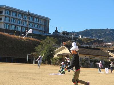 2年生が、生活科の時間にたこ上げに挑戦しました。2学期の終わりに作成していたたこを、この時期に合わせて上げました。この日は、朝の気温がマイナスでとても寒い日でした。運動場に出てみると、太陽の日差しがたくさんあり、たこ上げにちょうどよい風が吹いていました。2年生の子どもたちは、運動場に出るやいなや走り始めました。それと同時に、たこが次々に青空に!予想以上の上がり方に、子どもたちは大喜び。友達と併走しながらたこ上げをする子どもたちもいました。最近はあまり見かけなくなったたこ上げをする姿。今回の学習を機に、安全な場所でたこ上げにどんどんチャレンジしてほしいと思います。その中で、上手にたこを上げる方法を身に付けることができることを願っています。