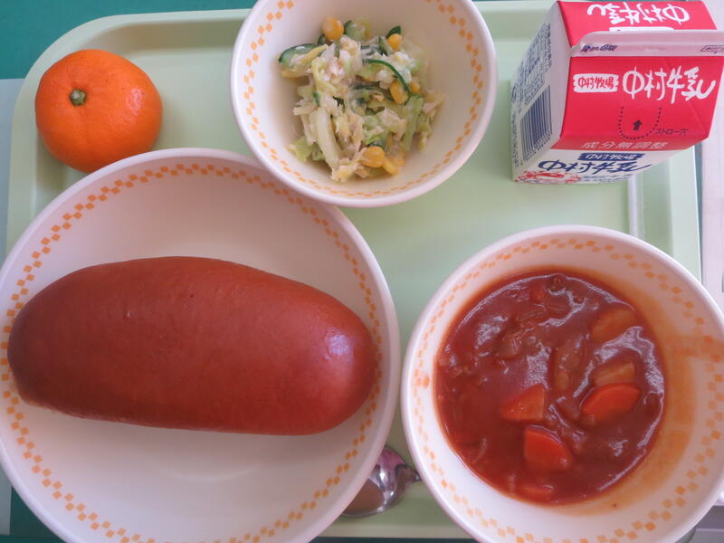 今日は地産地消給食の日、第2弾です!「高千穂牛肉」をじっくり煮込んだビーフシチューが登場します。牛肉の旨味がデミグラスソースに溶け込み、じゃがいもやにんじんもトロトロで美味しいですよ。デザートには、ビタミンCたっぷりの「みかん」もつきます。地元の農家さんへの感謝を忘れずに食べましょう。