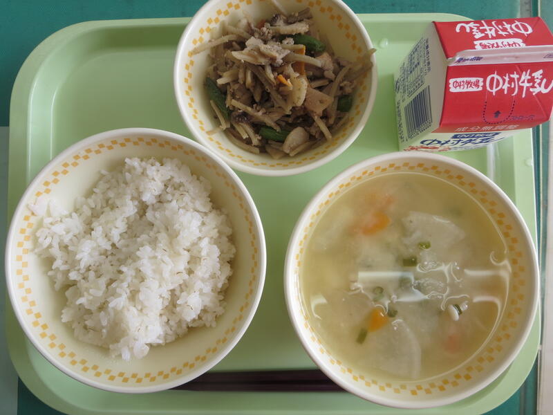 今日の「根菜のきんぴら」には、ごぼうやれんこんなど、噛み応えのある野菜が入っています。よく噛んで食べることは、あごの成長を助けるだけでなく、脳を刺激して頭をスッキリさせる効果もあります。「いなか汁」にはだいこんやねぎ、豆腐が入っており、栄養バランスも抜群です。麦ごはんを主食に、日本の伝統的なおかずに親しみ、体の芯からパワーを湧かせましょう!