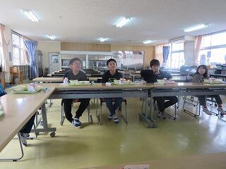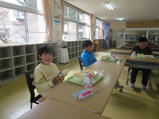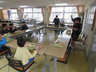 一緒に楽しく給食を食べながら、友達同士、誕生日を教え合ったり、好きな給食について話したりしていました。