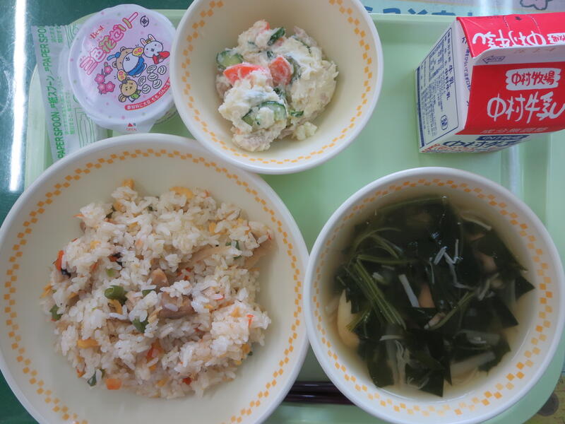 今日は、リクエスト給食のポテトサラダを献立に取り入れました!"