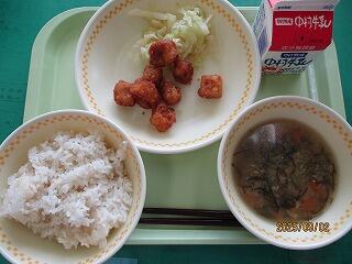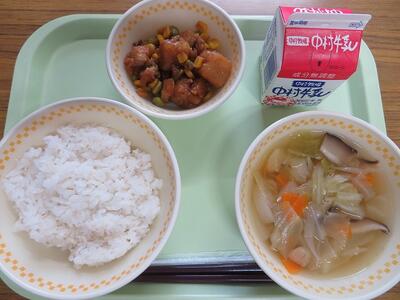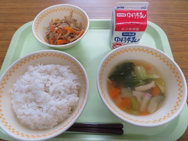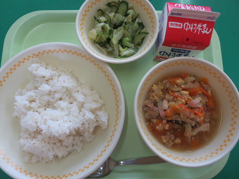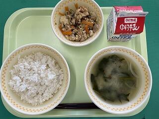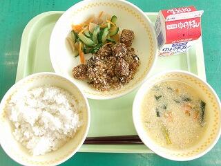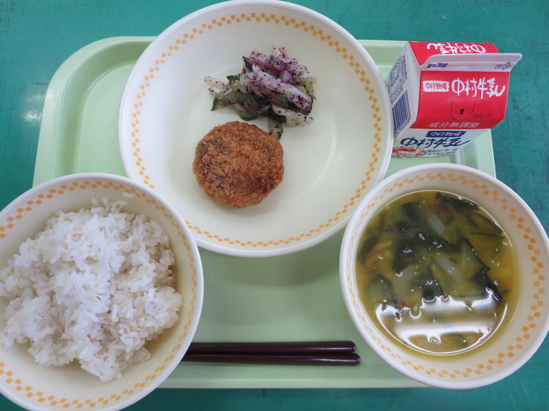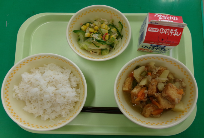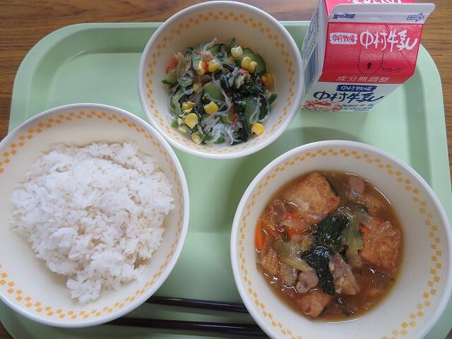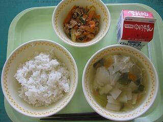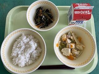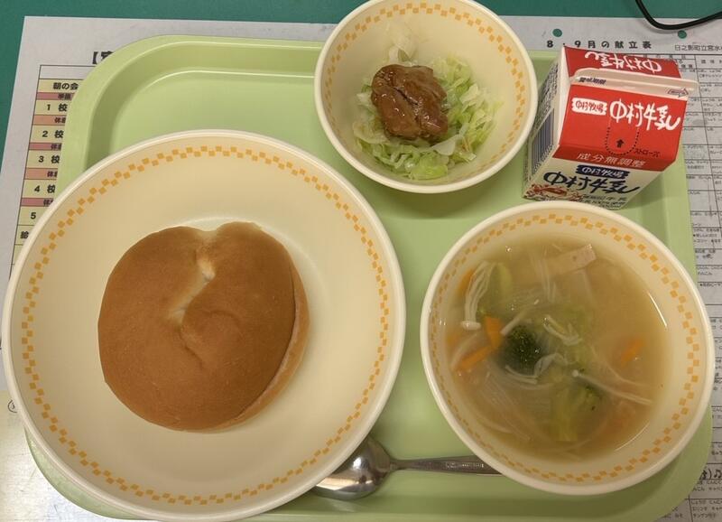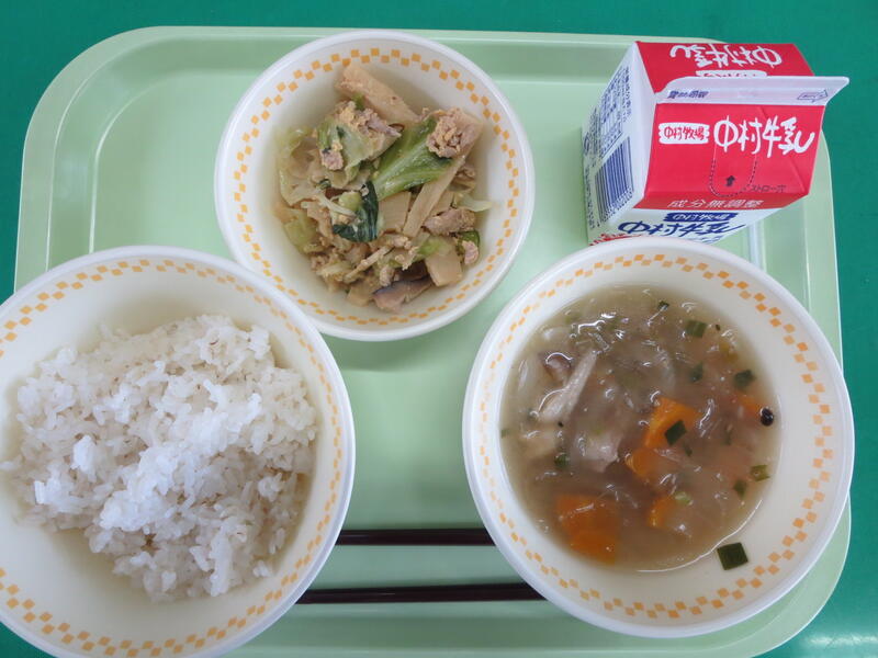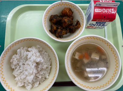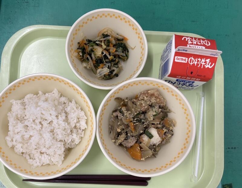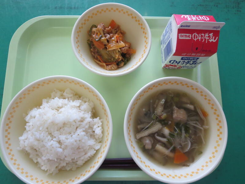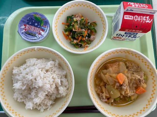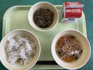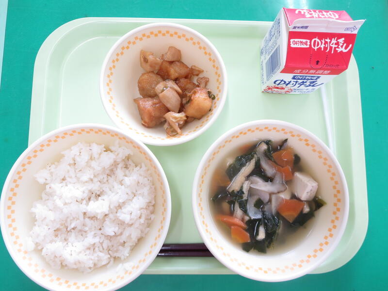 今日のみそ汁には、豆乳が入っています。豆乳は、大豆からできているので、たんぱく質がたっぷり含まれています。これは、みなさんの筋肉や骨のもとになって、体を大きく丈夫に育てるのを助けてくれます。また、鉄分も含まれているので、赤血球がしっかり働いて、貧血を防ぎ、元気に学校生活を送る手助けをしてくれますよ。