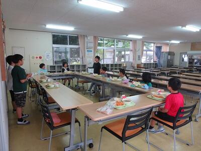 今日は食事マナーについてのお話です。気持ちよく食べるためのマナーは、感謝の心を表すことから始まります。食べる前の「いただきます」と食べ終わったあとの「ごちそうさま」は、命や作ってくれた人への感謝の言葉です。また、姿勢を正し、食器を持って食べることで、見た目もよくなり、食器に食べ物が残らず、きれいに食べ終わることができます。みんなで食事マナーを守り、楽しい給食時間にしましょう。