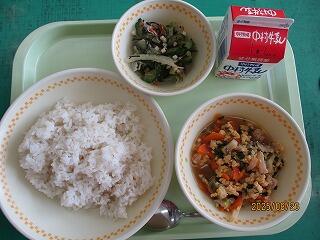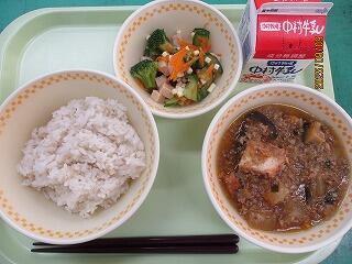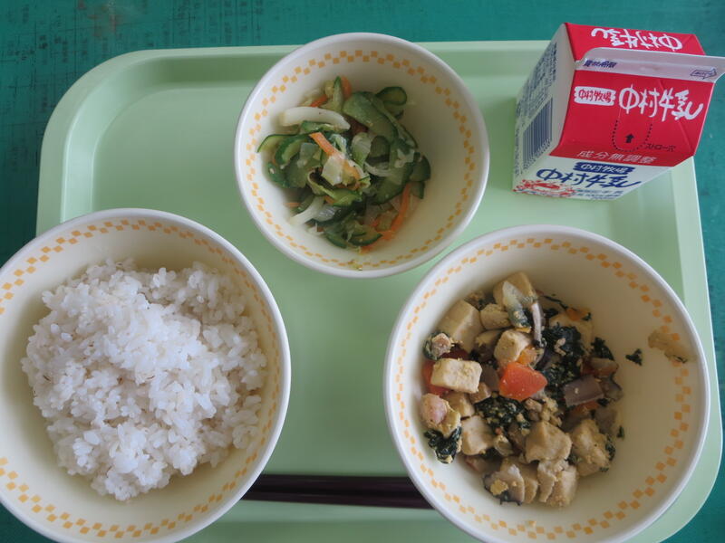 今日は豆腐についてのお話です。豆腐は、大豆から作られ、質の高いたんぱく質が豊富です。これは、みんなの体や筋肉、血液などを作るのに欠かせない栄養素です。また、骨を丈夫にするカルシウムや、貧血を予防する鉄分も多く含むため、成長期のみなさんに食べてほしい大切な食品です。お肉と比べてカロリーが低く、体に優しい、元気の源です。残さず食べてくださいね。