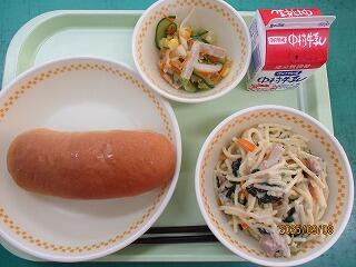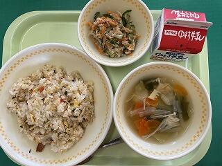 今日はじゃこ和えに入っているちりめんについてのお話です。ちりめんは、いわしなどの小さな魚を干したものです。特に骨や歯を丈夫にするカルシウムが、牛乳よりも多く含まれている、パワー食材です。さらに、血や筋肉の材料になるたんぱく質、そして脳の発達を助けるDHAやEPAなどの脂質も豊富です。小さい食材ですが、その中にぎゅっと大切な栄養素が含まれていることに驚きますね。