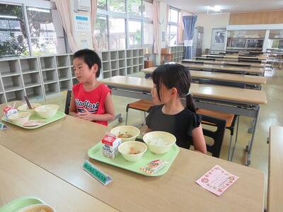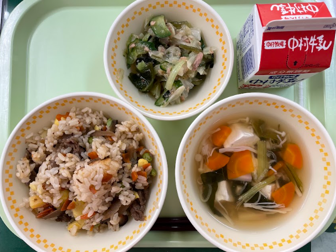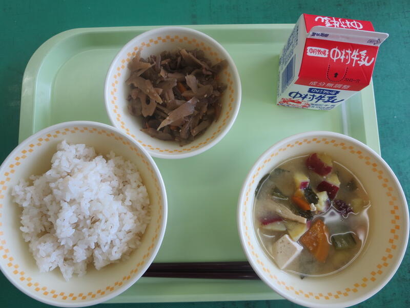 今日のさつまいもは、宮水小の1年生と2年生が収穫したさつまいもです。さつまいもの優しい甘さが、みそ汁に溶け込んでいて、とてもおいしかったです。
