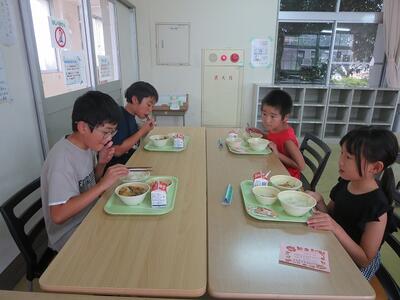 みなさんが給食で、毎日当たり前のように飲んでいる牛乳。この牛乳は、日之影町から遠く離れた都城市から牛乳屋さんが届けてくださいっています。給食に間に合うように、朝8時に給食室に届けてくださっています。牛乳屋さんにお話を聞いたところ、なんと、牛乳屋さんは毎日夜の10時頃に起きて、11時頃に出発するそうですよ。家に帰って寝るのは午後2時頃だそうです。「みなさんにおいしい牛乳を飲んでもらうために毎日がんばっています」とおっしゃっていました。感謝の気持ちを込めながらいただきましょう。
